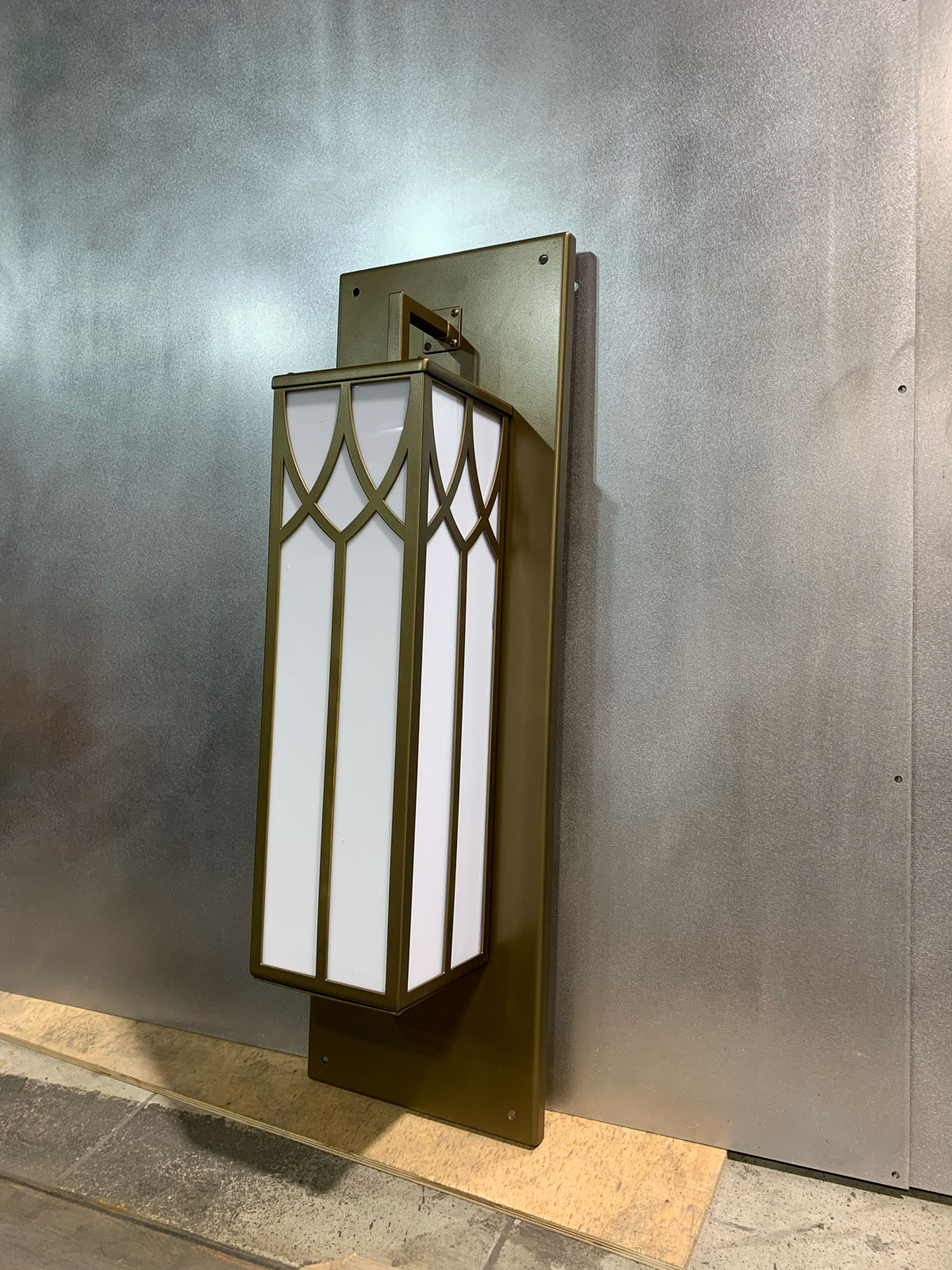Лицевая часть светильника – съемная решетка с хрусталем. Решетку вырезали на лазерном станке из полированной нержавеющей стали. Во время резки большая часть поверхности была повреждена, поэтому решетку пришлось вручную полировать до зеркального блеска.
